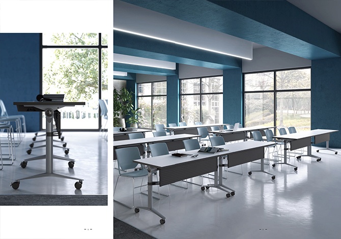VEB培訓(xùn)桌移動(dòng)靈活,易于折疊,能夠有效解決單一空間下的多種場(chǎng)景需求,產(chǎn)品可任意組合布局,方便用戶工作、學(xué)習(xí)和交流。它擁有人性化的操作:桌面可一鍵翻折,簡(jiǎn)單方便,結(jié)構(gòu)牢固,不存在因誤操作而損壞任何部件的機(jī)率。桌面翻折后,便于疊放,最大限度利用空間。當(dāng)下用戶需要靈活的產(chǎn)品,方便對(duì)環(huán)境進(jìn)行布局重組,在學(xué)習(xí)、討論、會(huì)議及其他多種情境下快速切換功能,以達(dá)到降低資源配置的目的。VEB培訓(xùn)桌正是在此初衷下應(yīng)運(yùn)而生,能有效實(shí)現(xiàn)在培訓(xùn)、教學(xué)、小組會(huì)議或大型會(huì)議之間的功能切換,滿足用戶不同使用需求。